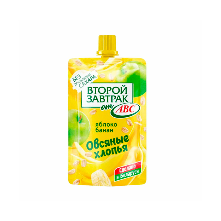 Десерт фруктовый "Второй завтрак от АВС" Яблоко, банан с овсяными хлопьями — это полезный и питательный продукт, который сочетает в себе овсяные хлопья и натуральные фрукты. Он обеспечивает мягкий сладкий вкус и приятную текстуру, подходит для завтрака или лёгкого перекуса. Идеально для дома, офиса или поездки, насыщает и придаёт энергии.