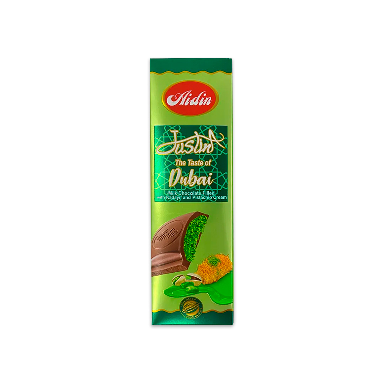 Дубайский молочный шоколад «Aidin Justin» с кадаифи — изысканный шоколадный десерт с нежной молочной основой и хрустящей прослойкой из кадаифи. Богатый вкус шоколада гармонично сочетается с текстурой тонких сладких нитей, создавая уникальное ощущение при каждом кусочке. Прекрасно подходит для подарков, угощений и наслаждения в любое время дня. Идеальный выбор для любителей необычных и качественных сладостей.
