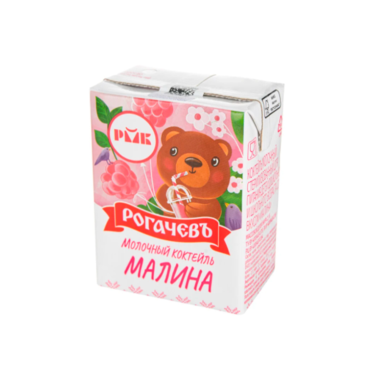 Молочный коктейль «Рогачёв» со вкусом малины — это готовый напиток на основе нормализованного молока, сахара и натурального ароматизатора «Малина». Жирность — 2,5%. Имеет лёгкий, освежающий молочно-фруктовый вкус, приятную текстуру и фруктово-молочный аромат.