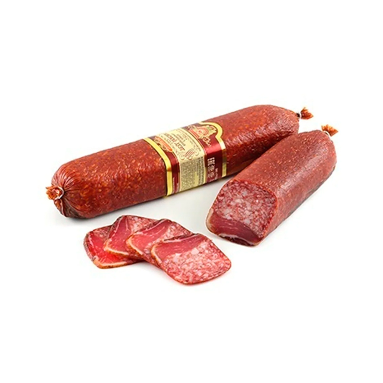 Колбаса «Мясной союз» сырокопчёная — ароматный деликатес, приготовленный из отборного мяса с добавлением тщательно подобранных специй. Медленное копчение придаёт продукту насыщенный вкус, плотную текстуру и аппетитный аромат. Колбаса идеально подойдёт для нарезки, закусок и бутербродов, сохраняя традиционное качество и насыщенность вкуса. Отличный выбор для тех, кто ценит натуральные продукты и классические мясные деликатесы.
