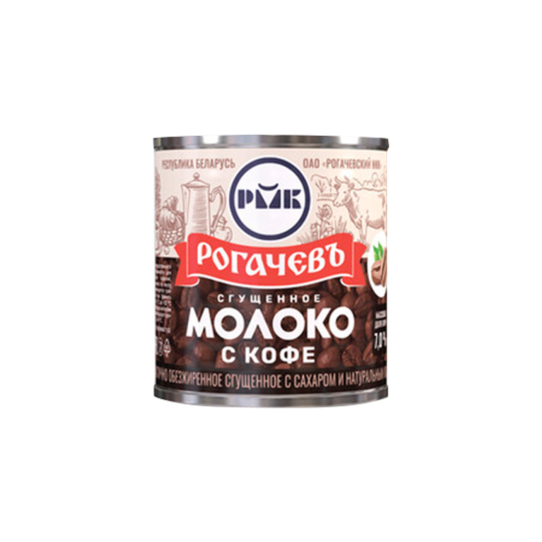 Сгущённое молоко с кофе от легендарной белорусской марки «Рогачёв» — это густой, сладкий молочный продукт с добавлением натурального растворимого кофе. Благодаря мягкому кофейному вкусу и нежной карамельной текстуре оно идеально подходит для добавления в чай, кофе, десерты или в качестве самостоятельного лакомства.