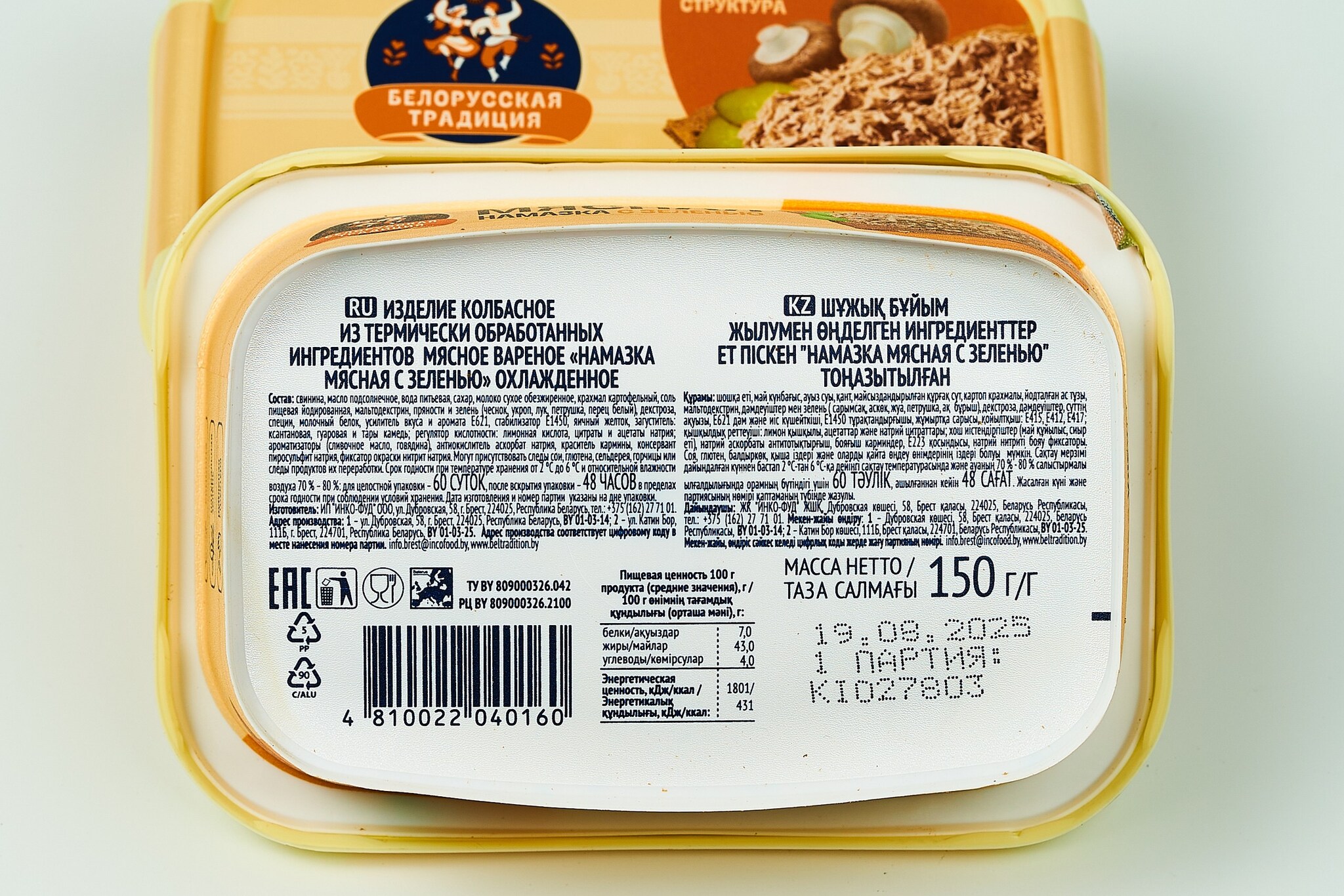 Намазка мясная с зеленью "Белорусская традиция" — это нежный мясной продукт с ароматом свежей зелени, приготовленный из высококачественного сырья. Легкая консистенция и сбалансированный вкус делают её отличным выбором для бутербродов, тостов и закусок. Продукт подходит как для завтрака, так и для перекусов в течение дня.