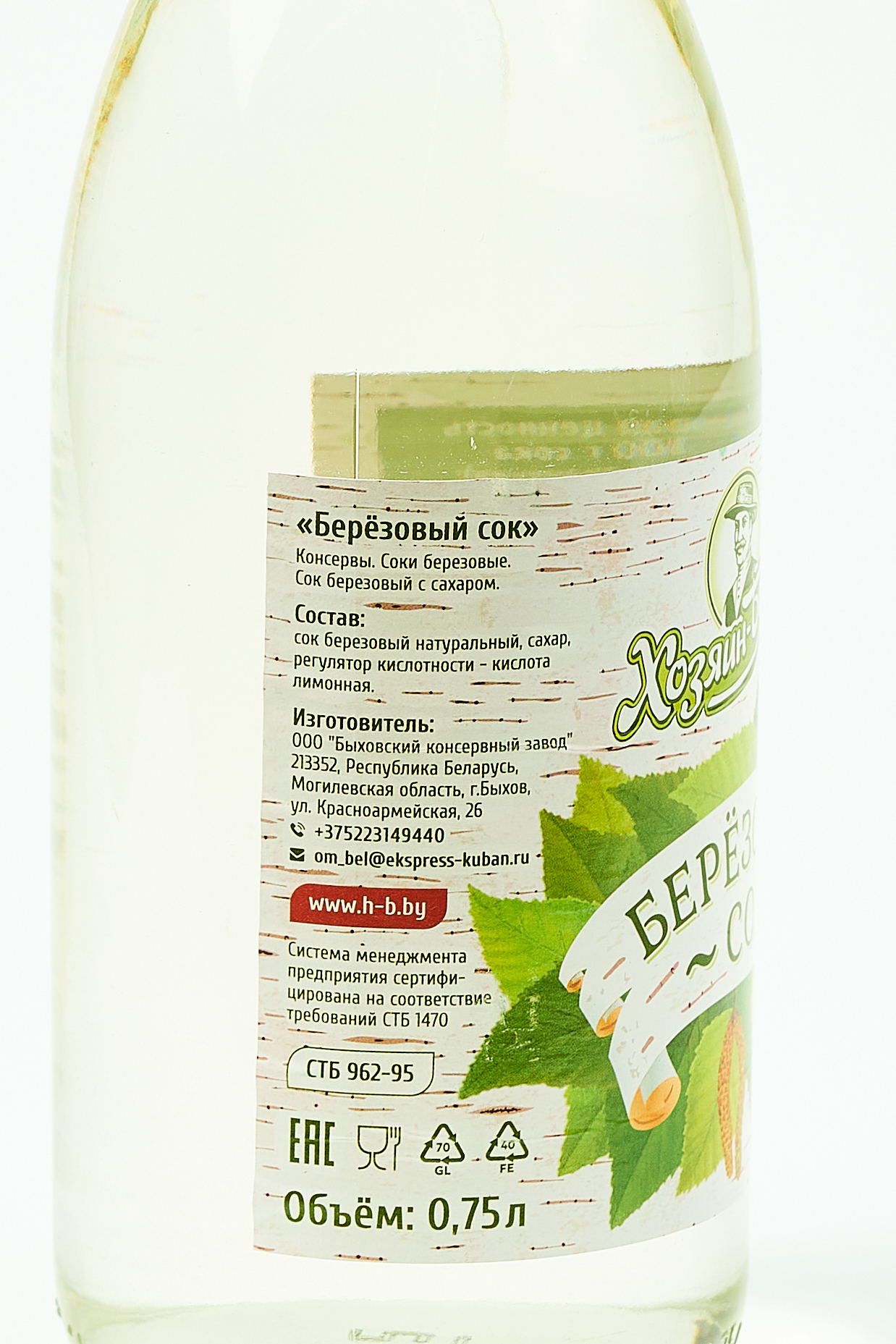 Сок «Берёзовый» от бренда «Хозяин-Барин» — натуральный напиток, приготовленный из свежего сока берёзы. Обладает лёгким, освежающим вкусом с характерной сладковатой ноткой. Богат полезными веществами и минералами, этот сок отлично утоляет жажду и способствует поддержанию общего тонуса организма.