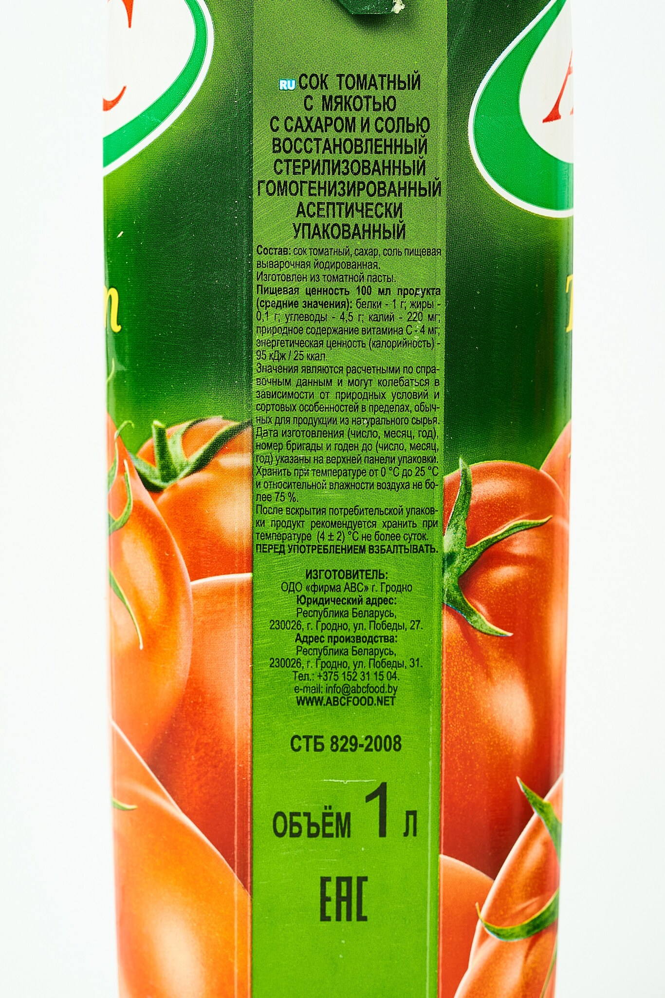 Состав сока "Томатный":