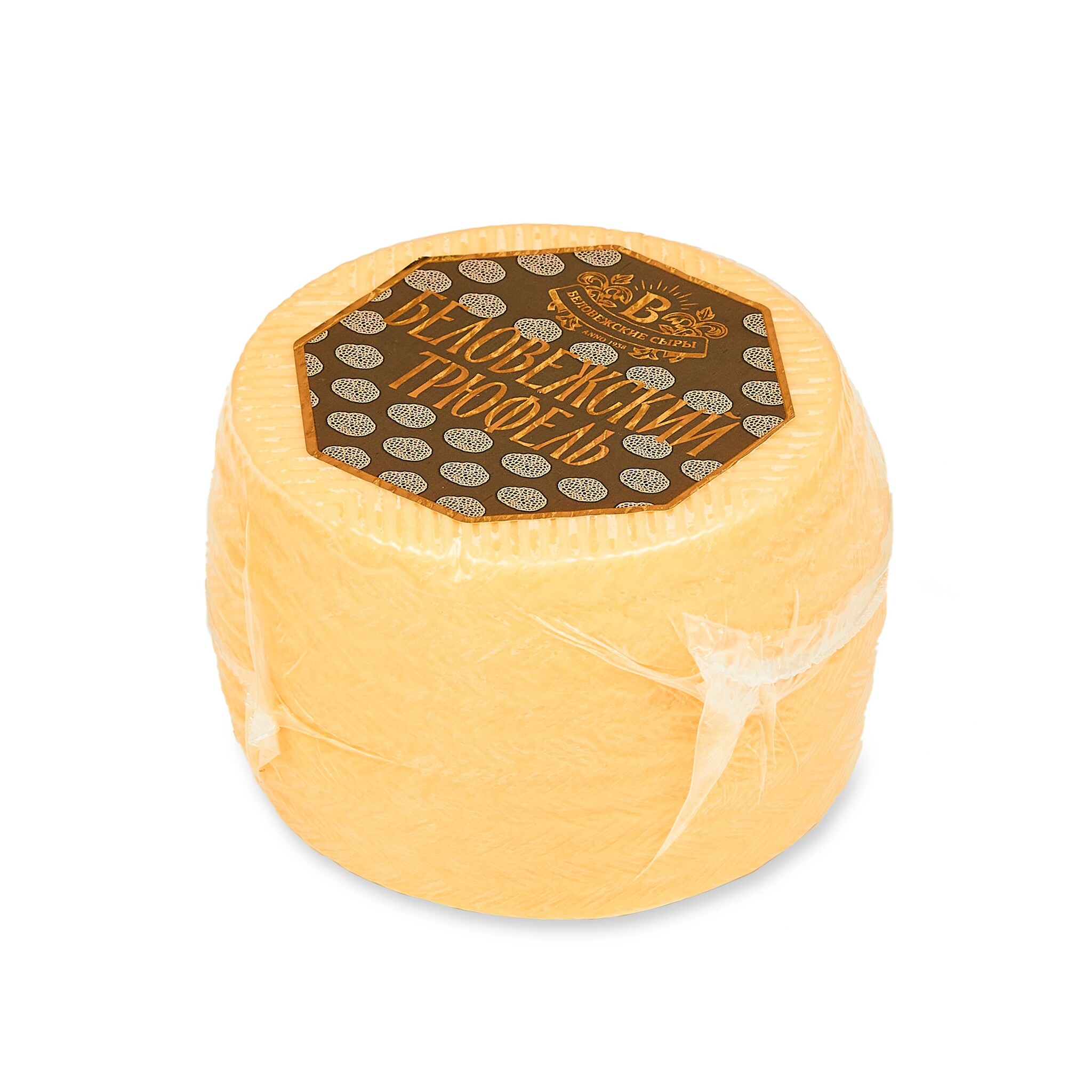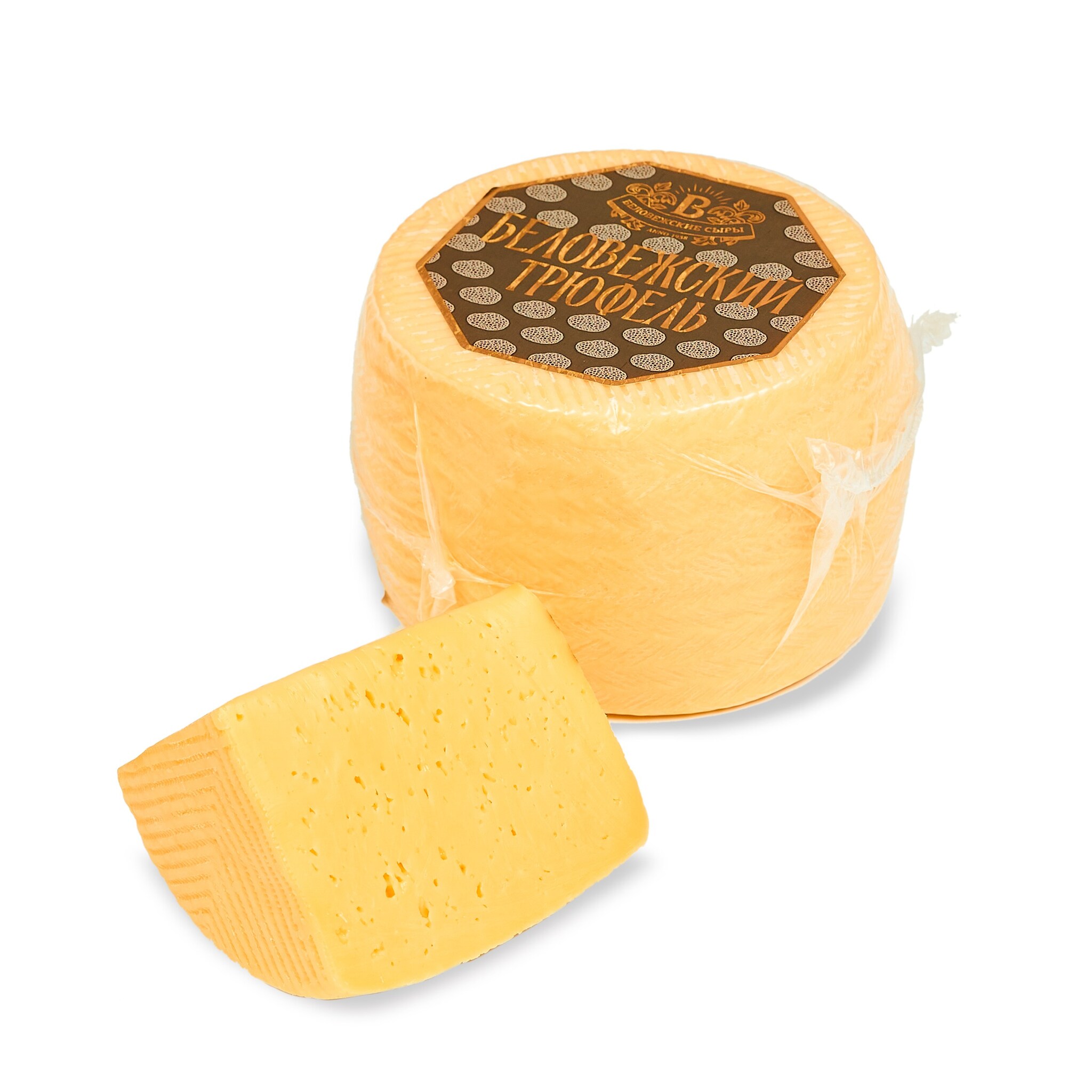 Сыр "Беловежский трюфель" с пажитником и ароматом грецкого ореха - Полутвёрдый сычужный жирностью 40%. Сыр обладает умеренно выраженным сырным, слегка кисловатым вкусом с оттенком внесенных вкусоароматических смесей пажитника и грецкого ореха.