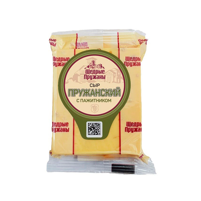Сыр «Пружанский» с пажитником — ароматный полутвёрдый сыр с добавлением семян пажитника, придающих нежный ореховый вкус и характерный аромат. Изготовлен из качественного молока по традиционной технологии, сыр отличается плотной, но эластичной текстурой. Отлично подходит для нарезки, бутербродов, салатов и горячих блюд. Идеальный выбор для тех, кто ценит необычные и натуральные сыры с выразительным вкусом.