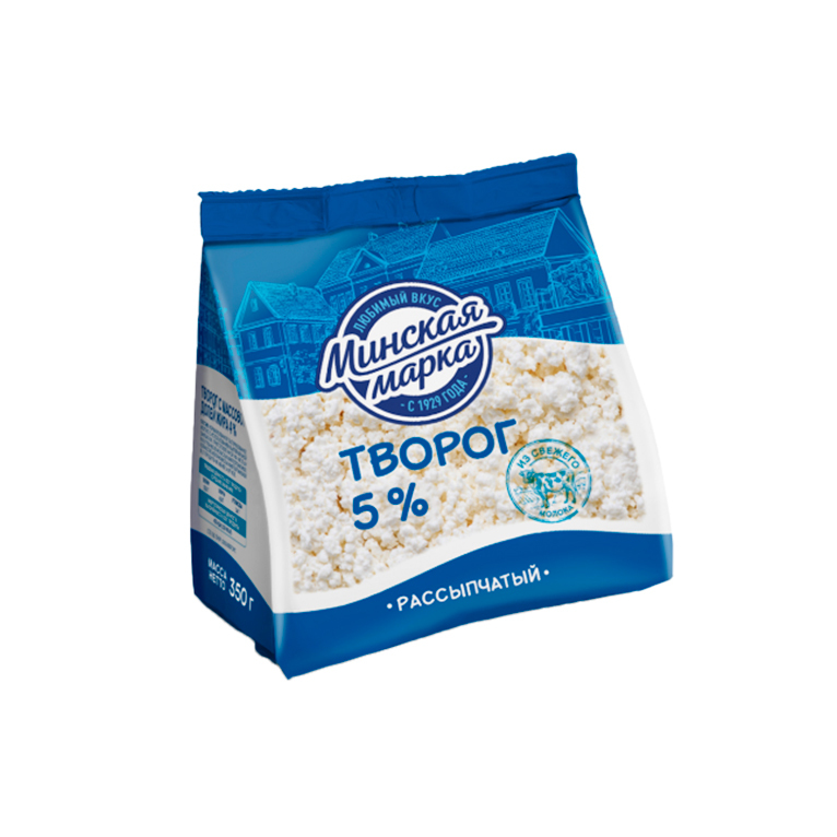 Натуральный рассыпчатый творог с 5 % жирности от белорусского производителя «Минская марка». Имеет нежную, слегка зернистую текстуру и мягкий сливочный вкус. Идеален для завтраков, лёгких перекусов, а также для приготовления сырников, запеканок и десертов.